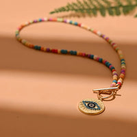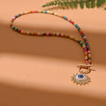 Bunte Steinperlen Halskette mit Evil Eye Anhänger – Leonie