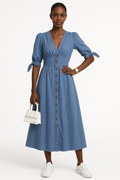 Das Maxikleid Damen Elegant V-Ausschnitt Seitenschlitz – Elenya verkörpert zeitlose Raffinesse mit modernem Flair. Dank seines stilvollen V-Ausschnitts, des femininen Schlitzes und der bequemen Passform ist dieses Kleid der perfekte Begleiter für jede Gelegenheit – vom Stadtbummel bis zum eleganten Abendessen.