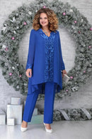 Genießen Sie stilvolle Raffinesse mit dem 3-teiligen bestickten Anzug in Übergröße – einer geschmackvollen Kombination aus Hose, Kurzarmbluse und einer langärmeligen Jacke mit filigraner Spitze. Dieses elegante Ensemble sorgt für einen vielseitigen und modischen Look, der zu vielen Gelegenheiten passt. Die kunstvolle Spitze an der Jacke verleiht dem Outfit einen Hauch von Anmut und hebt den Stil auf ein neues Niveau.