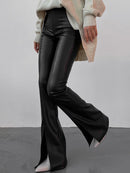 Flared Kunstlederhose mit Schlitz für Damen – Valeria