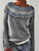 Entdecken Sie den Lena Damenpullover – eine perfekte Kombination aus minimalistischem Design und auffälligen geometrischen Mustern, die einen modernen und stilvollen Look kreiert.
