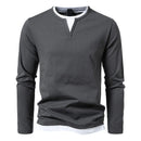 Unser langärmliges Henley-Shirt von Ralf kombiniert modernes Design mit minimalistischer Eleganz und ist die perfekte Wahl für jede Gelegenheit. Der schlichte, aber stilvolle Kragen sorgt für einen einzigartigen Look, der sowohl leger als auch raffiniert wirkt. Der doppellagige Stil verleiht dem Shirt Tiefe und setzt dezente, trendige Kontraste.