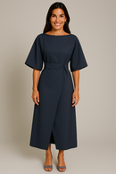 Romantisches Kleid mit Gürtel Damen knielang – Livia