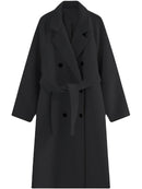 Bringen Sie stilvolle Vielseitigkeit in Ihre Garderobe mit dem langen Damenmantel mit Gürtel und Revers – Sophie, einem eleganten Begleiter für jede Jahreszeit.
