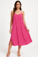 Dieses lässige Sommerkleid mit Spaghetti-Trägern kombiniert Komfort und Stil und ist ideal für warme Tage. Der luftige Schnitt und das weiche Material sorgen für ein angenehmes Tragegefühl, während das modische Muster einen frischen, sommerlichen Look verleiht. Perfekt für den Alltag, entspannte Urlaubstage oder sommerliche Ausflüge.